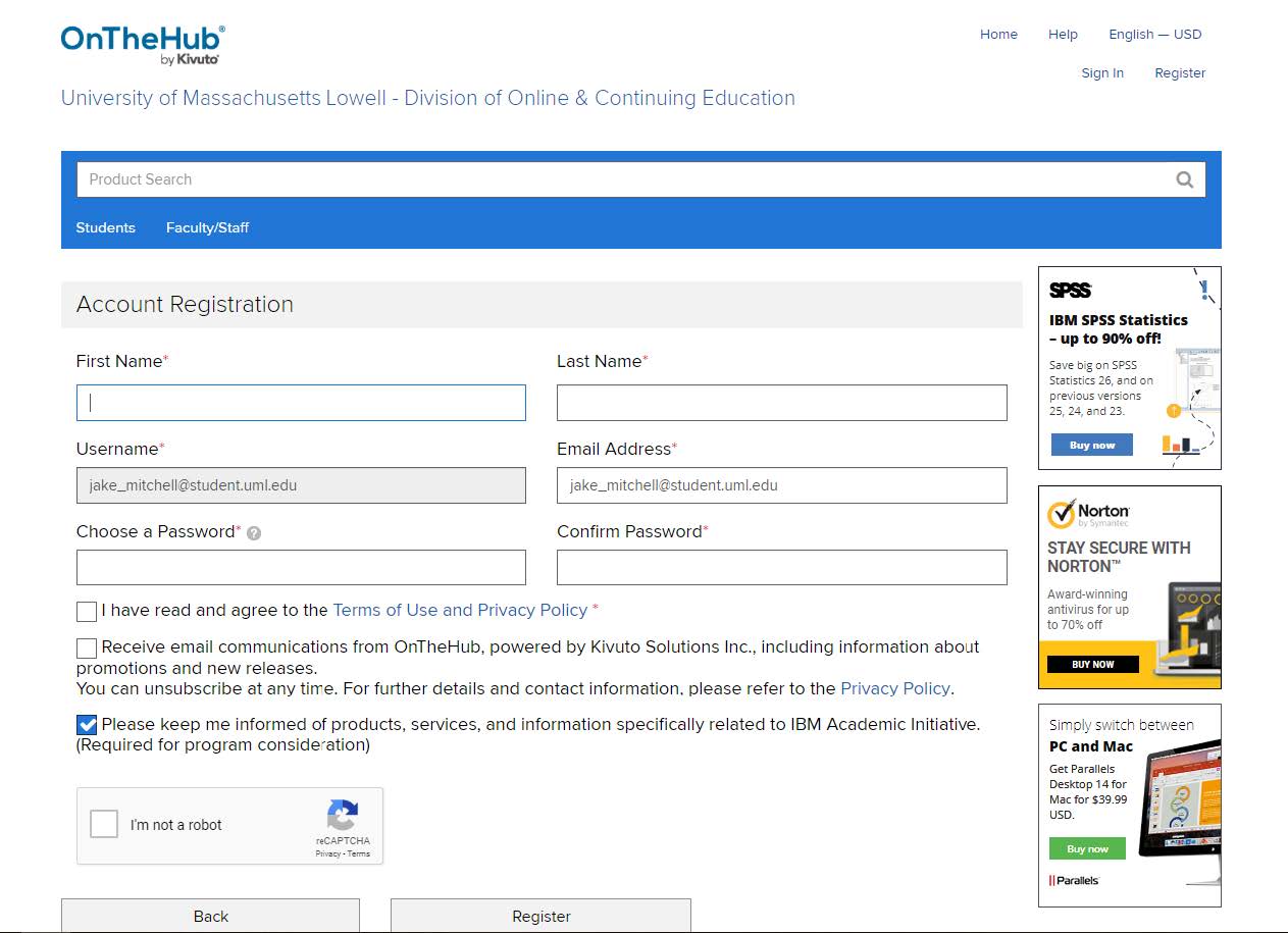 The link will bring you to the web page shown below, where you can enter the information requested. Click register once complete.