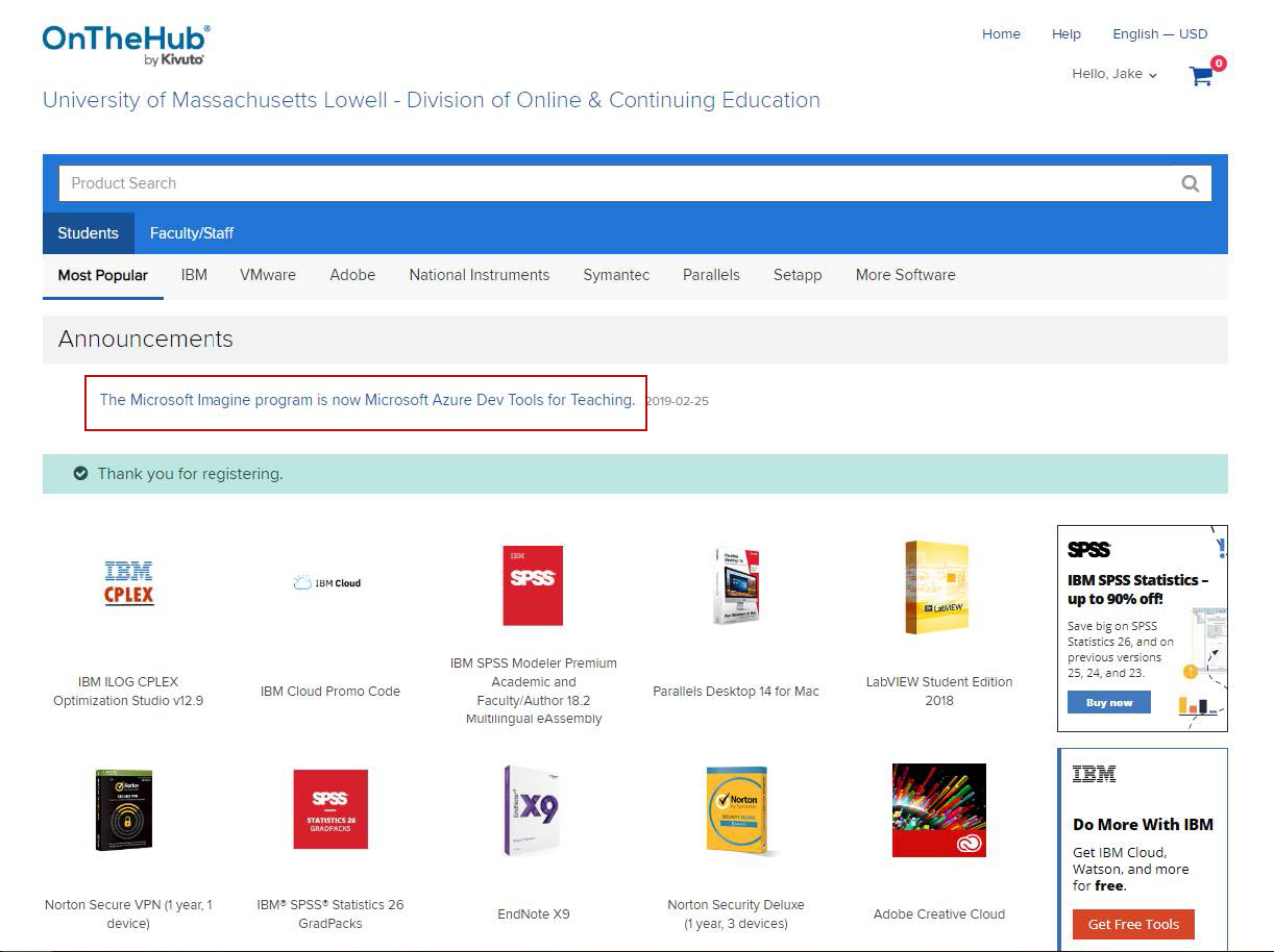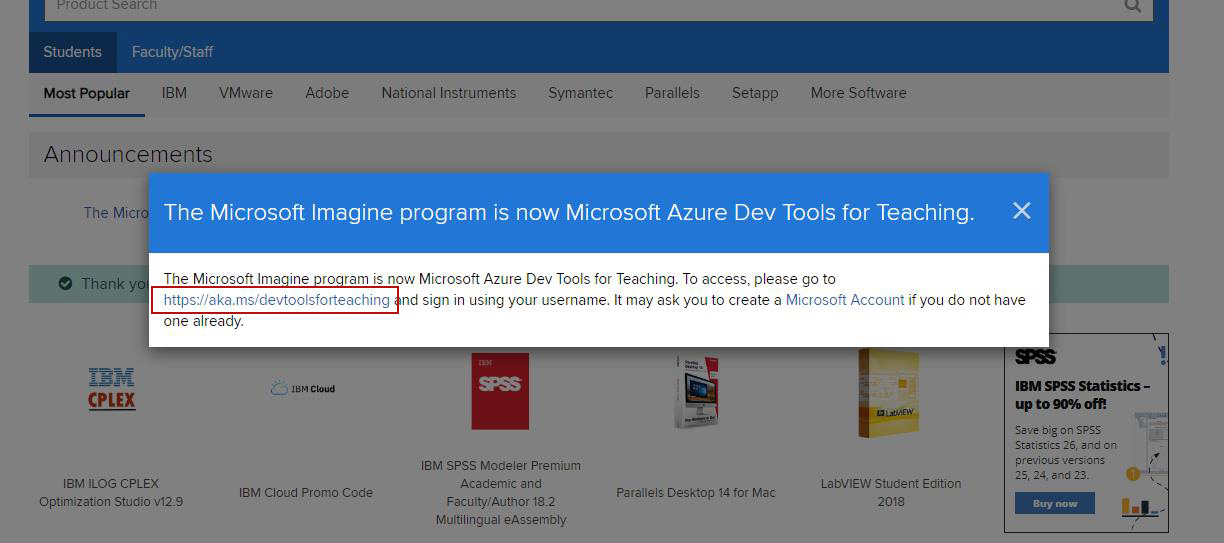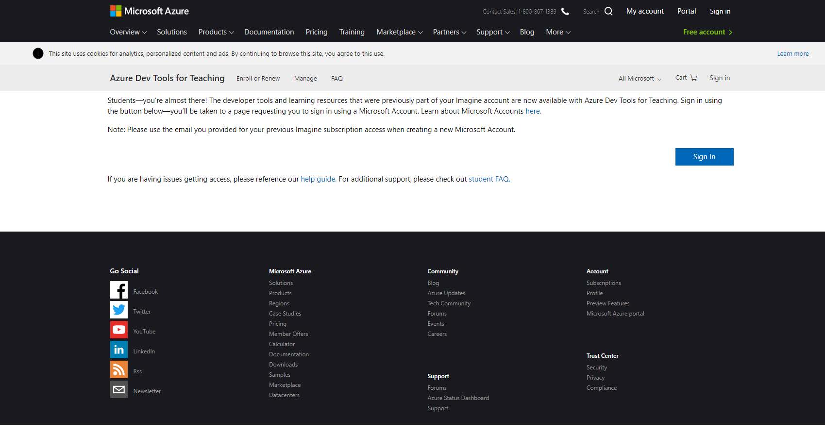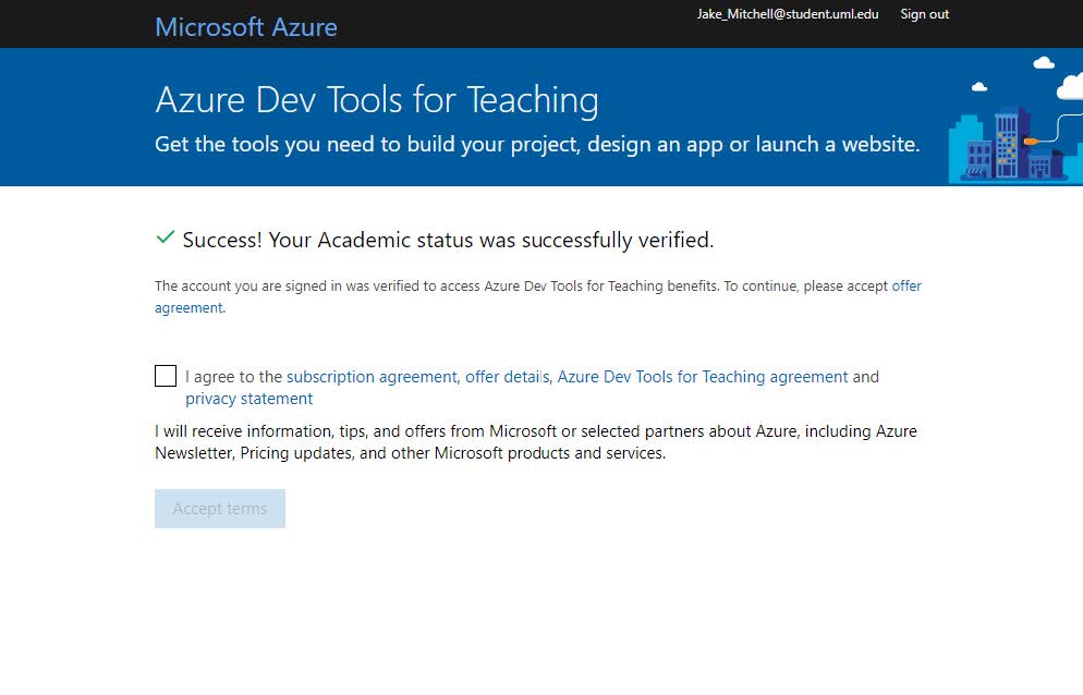 When done correctly, you will be redirected to the page below. You can accept the terms and will have access to Azure where a variety of programs can be found.