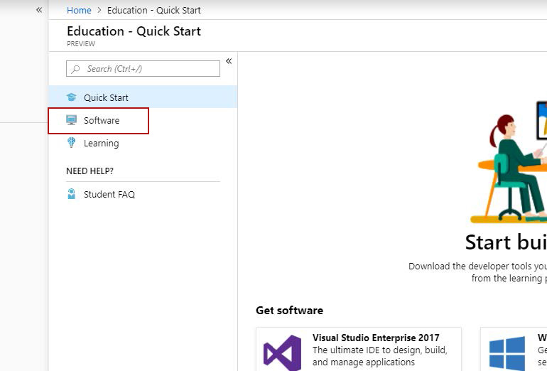 Once in Azure, you will be able to access software by choosing the software tab on the left